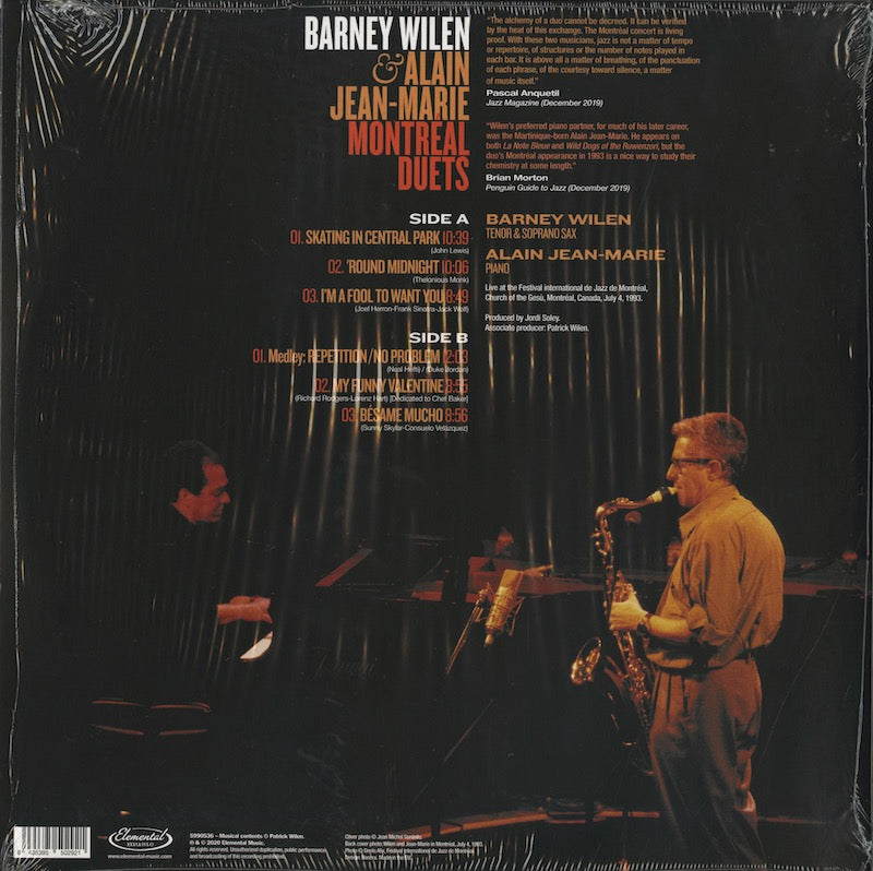マイルス・デイヴィス『死刑台のエレベーター』の録音にも参加したフランスを代表するテナー奏者バルネ・ウィランと同郷のピアニストであるアラン・ジャン・マリーのデュオによるモントリオールでのライヴ音源。”Round Midnight”,”My Funny Valentine”,”Besame Mucho”などのスタンダードをエスプリを効かせた解釈で披露。93年の録音。