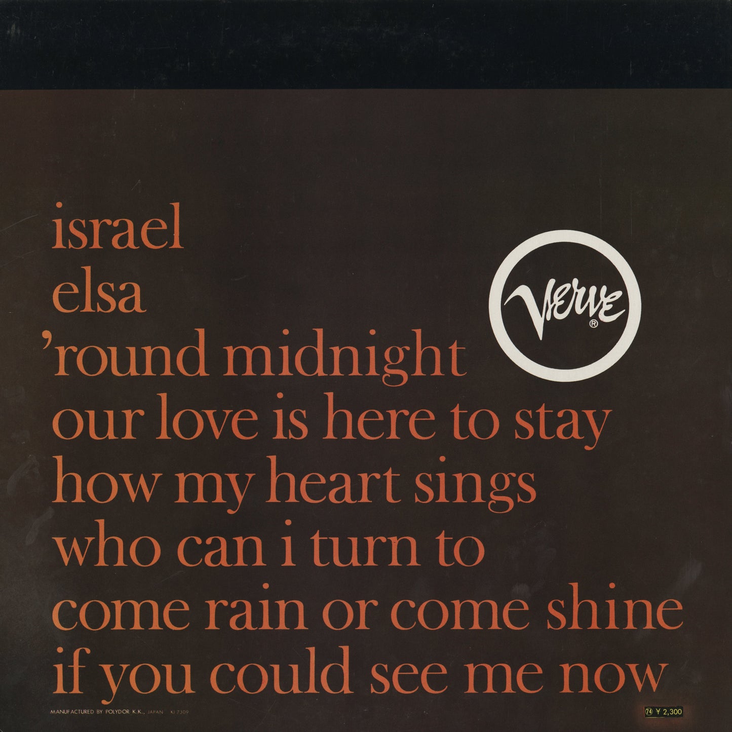 チャック・イスラエル、ラリー・ヴァンカーとのトリオ作。"Come Rain Or Come Shine"、"'Round Midnight"など収録。(VPI cleaned)