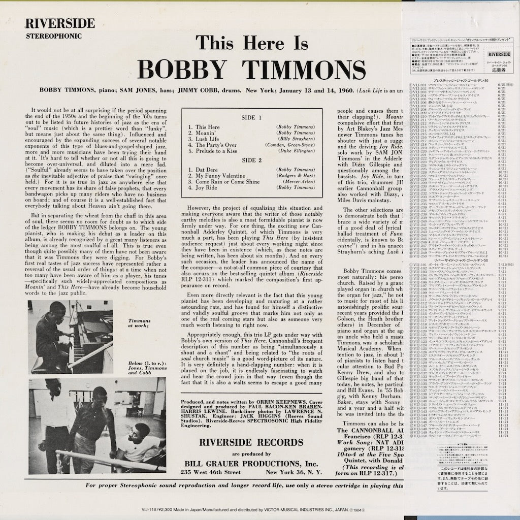 Bobby Timmons / ボビー・ティモンズ / This Here Is Bobby Timmons (VIJ-118)
