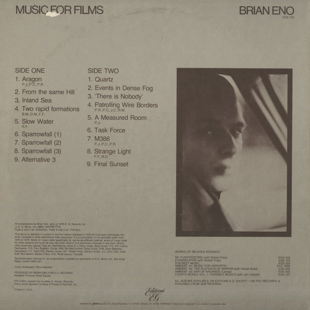 Brian Eno / ブライアン・イーノ / Music For Films (EGS105)