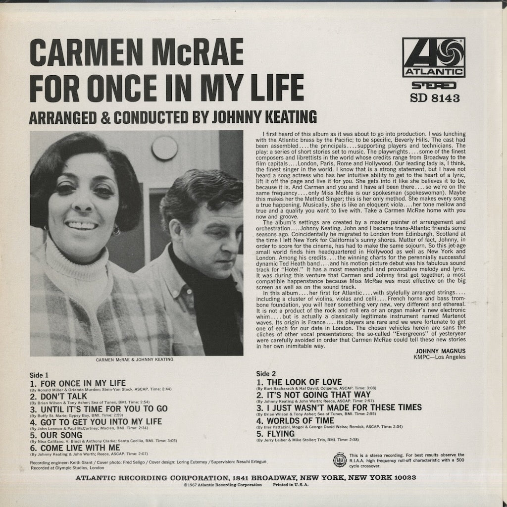 Carmen McRae / カーメン・マクレエ / For Once In My Life (SD 8143)