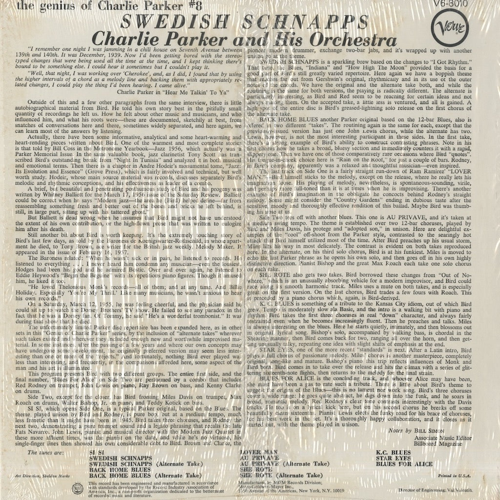 Charlie Parker / チャーリー・パーカー / Swedish Schnapps (V6-8010)