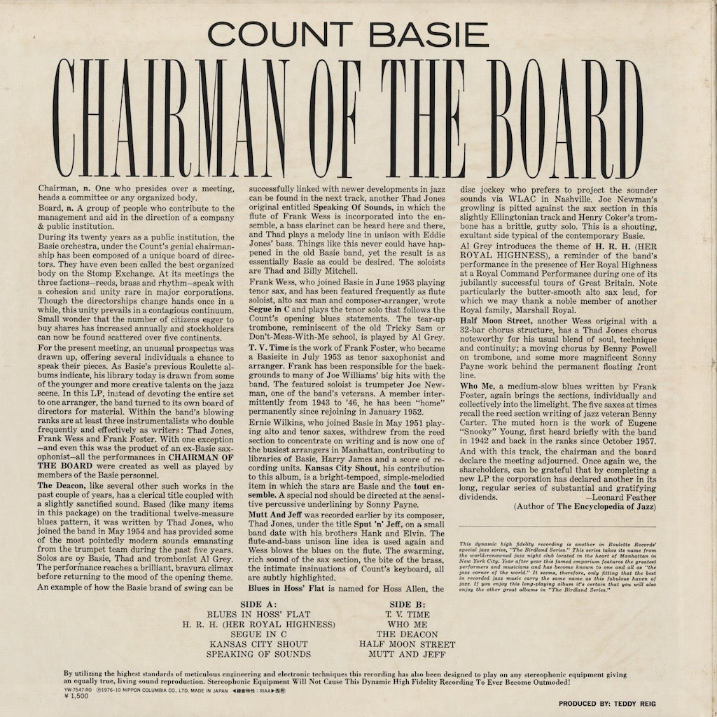 Count Basie / カウント・ベイシー / Chairman Of The Board (YW-7547-RO)