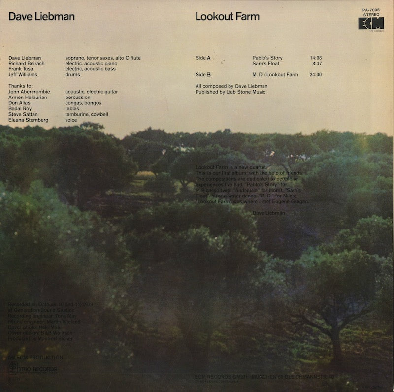 Dave Liebman / デイヴ・リーブマン / Lookout Farm (ECM-1-1039)