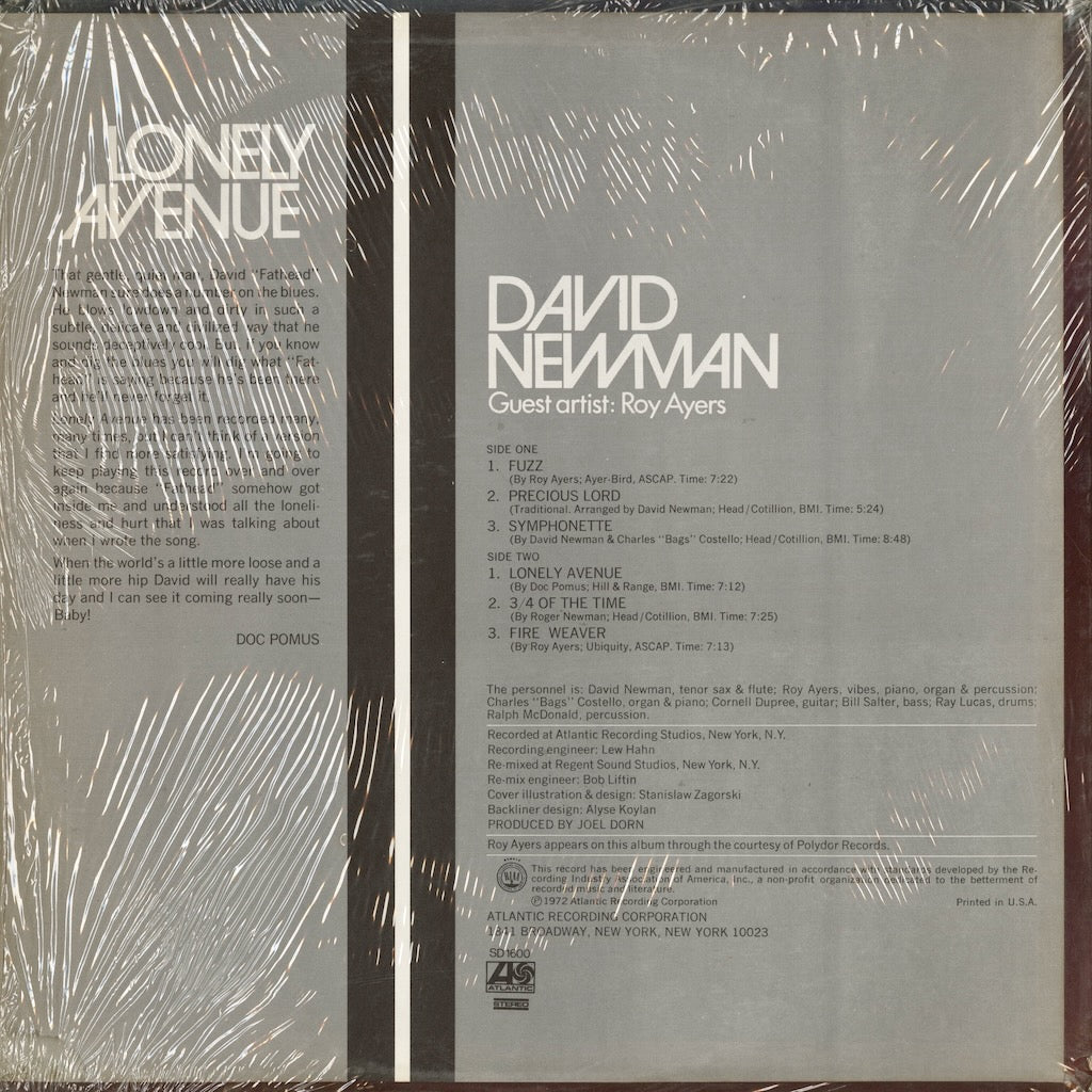 David Newman - Lonely Avenue (SD 1600) LP 1972 US Atlantic|中古LP