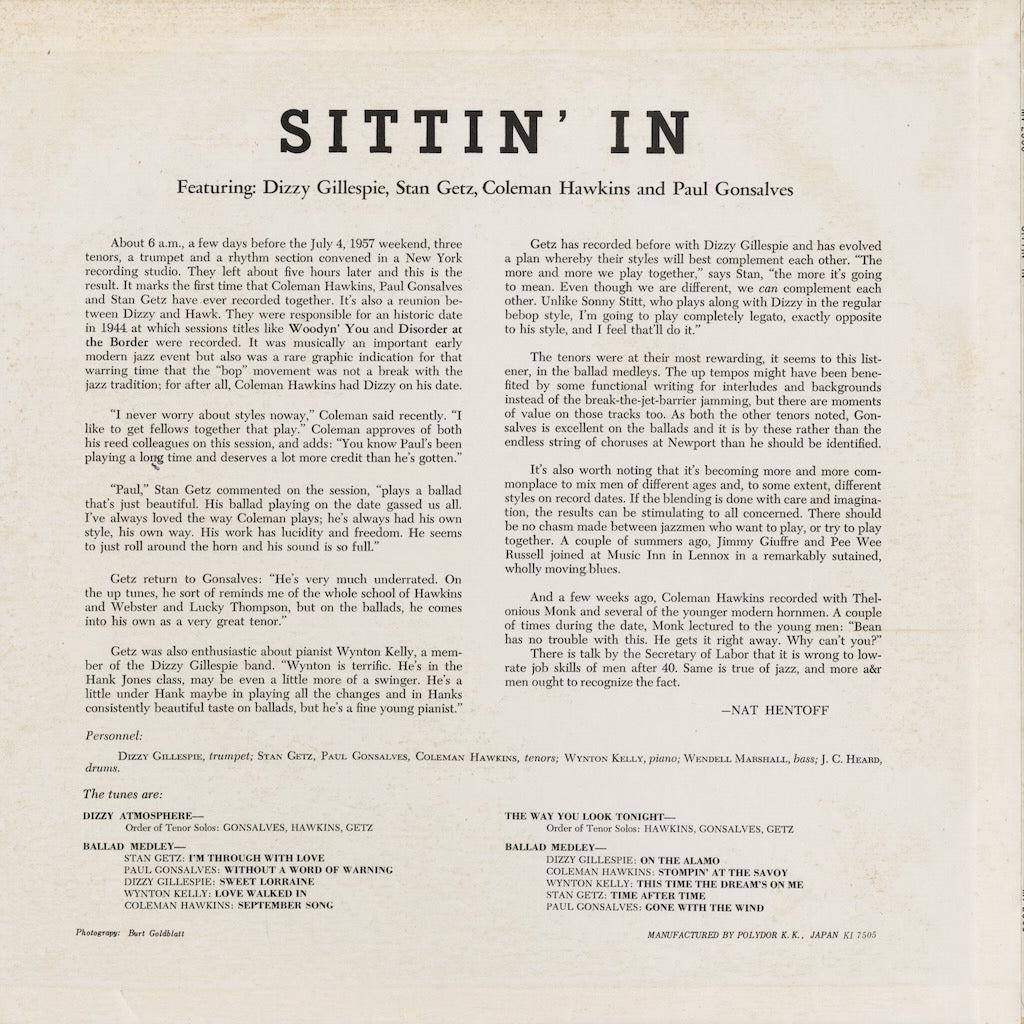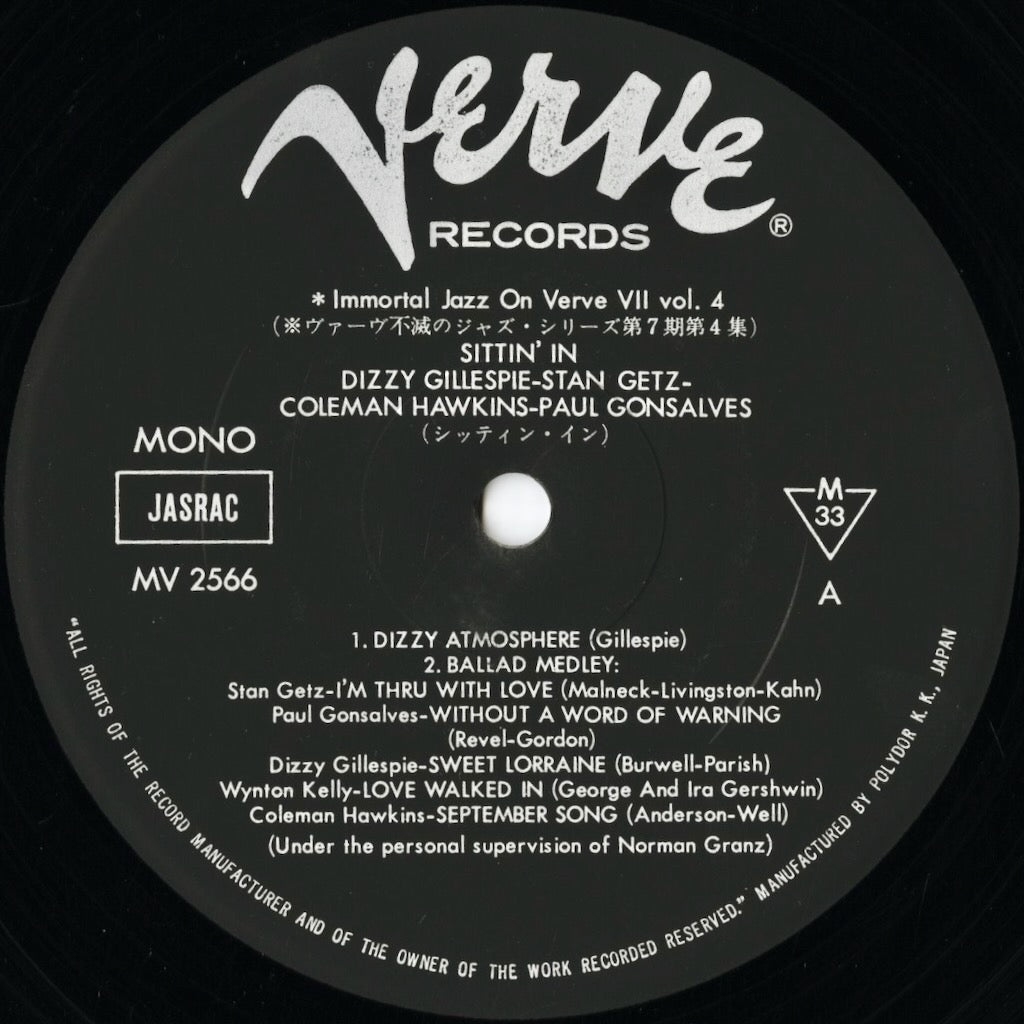 ディジー・ガレスピー、スタン・ゲッツ、ポール・ゴンサルヴェス、コールマン・ホーキンス、ウィントン・ケリー、ウェンデル・マーシャル、J.C.ハード//57年録音。豪華メンバーでのジャムセッション。(VPI cleaned)