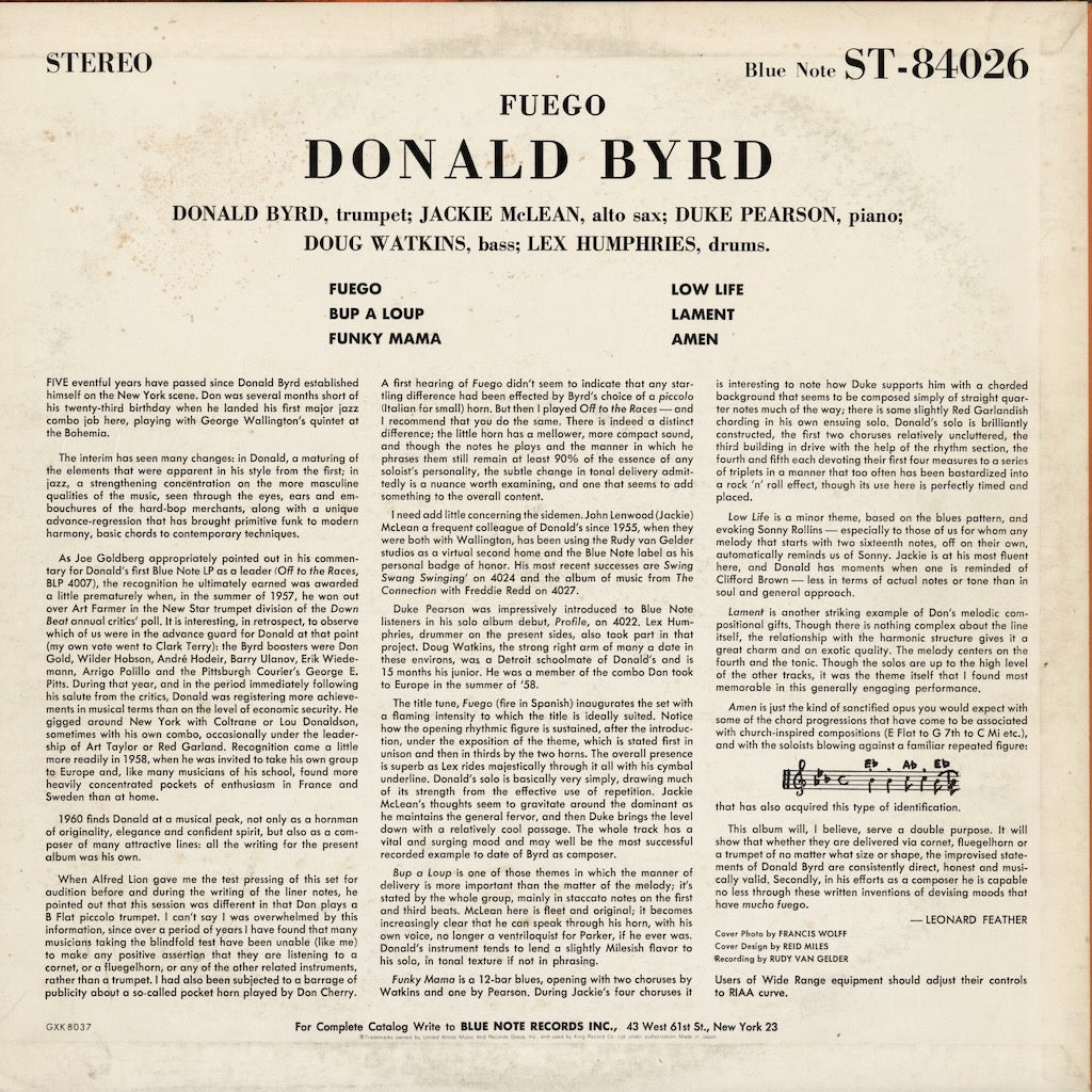 Donald Byrd / ドナルド・バード / Fuego (GXK 8037)