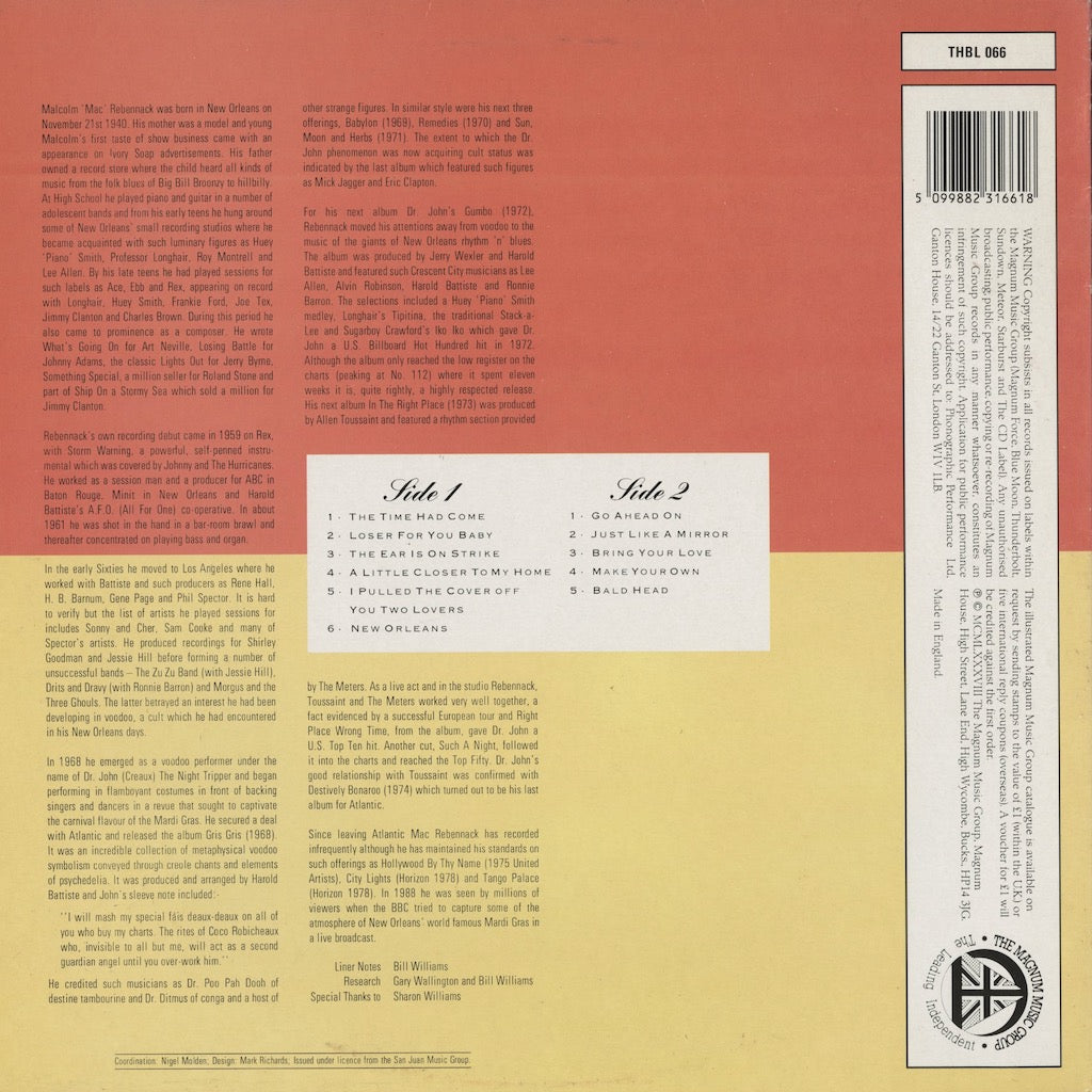ドクター・ジョンの81年発表ベスト盤。染み入る歌声と哀愁漂うピアノの音色が素晴らしい”The Time Had Come”が特にオススメです。(VPI cleaned)
