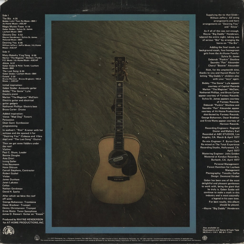 独特の音色にファンも多いギタリスト、ガボール・ザボの77年作。東欧的なムードは控えめに当時大ブレイクしていたジョージ・ベンソンを意識したようなスムースなサウンド。ボビー・ライルのエレピをフィーチャーしたメロウなジャズ・ギター作です。プロデュースはウェイン・ヘンダーソン。(VPI cleaned)
