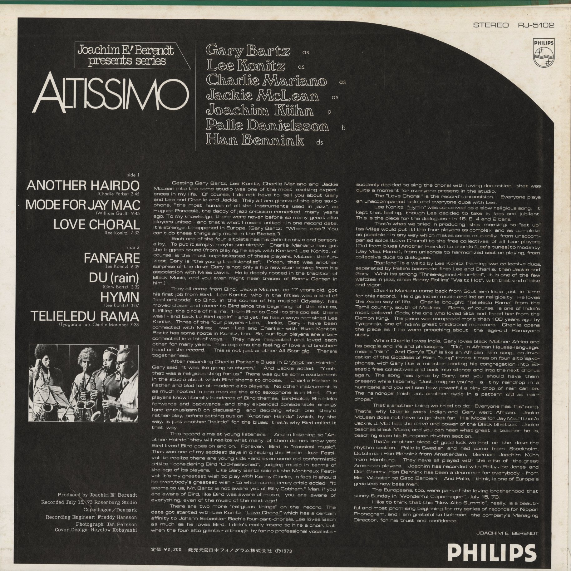 Gary Bartz / Lee Konitz / Charlie Mariano / Jackie McLean / ゲイリー・バーツ / Altissimo (RJ 5102)