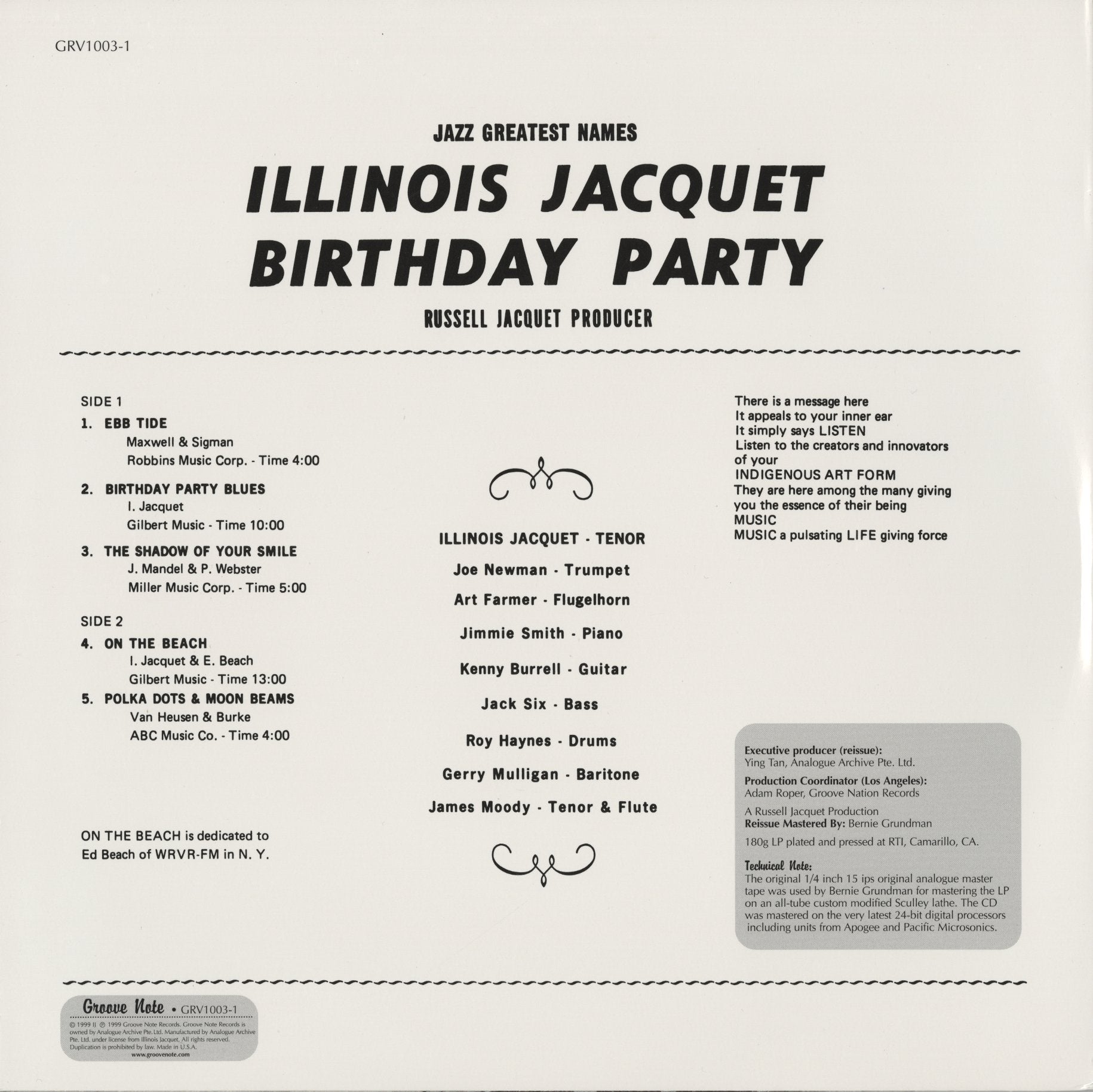 Illinois Jacquet / イリノイ・ジャケー / Birthday Party Vol.2 (GRV1003-1)