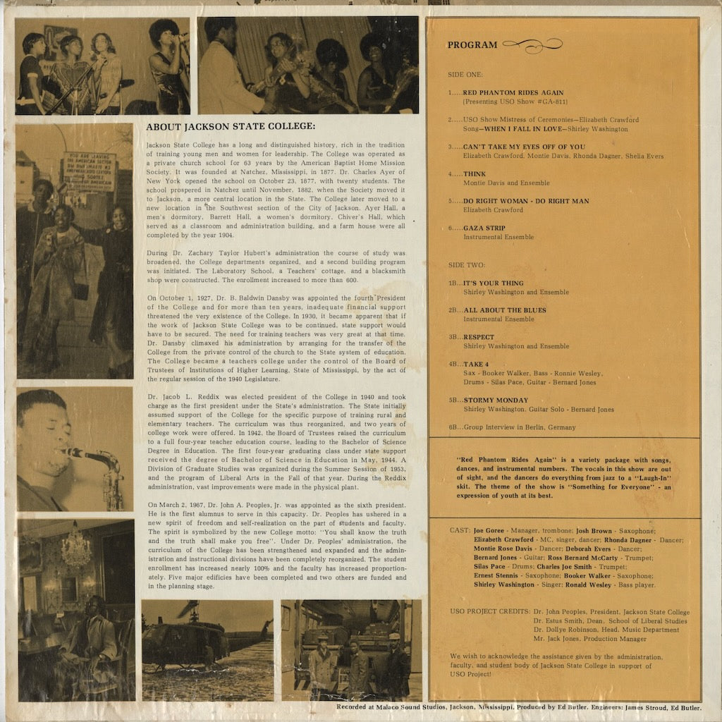 ミシシッピ州ジャクソンのカレッジ・バンド唯一のアルバム。アリサ・フランクリン、ヒュー・マセケラ、アイズレー・ブラザーズのカヴァー曲を収録しためちゃファンキーな内容。女性ヴォーカルをフィーチャーした曲も多くアルバムとしても完成度高し。(VPI cleaned)