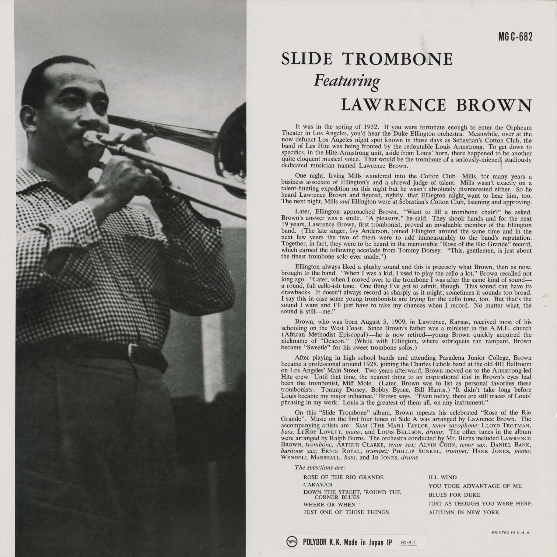 Lawrence Brown / ローレンス・ブラウン / Slide Trombone Featuring Lawrence Brown (POJJ-1506)