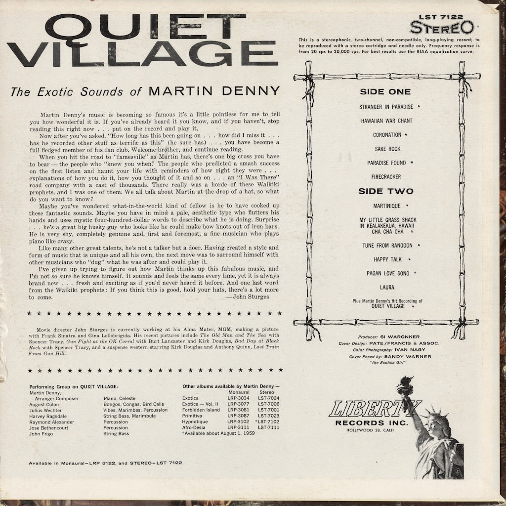 Martin Denny - Quiet Village (LST 7122) LP 1960 US Liberty|中古LP