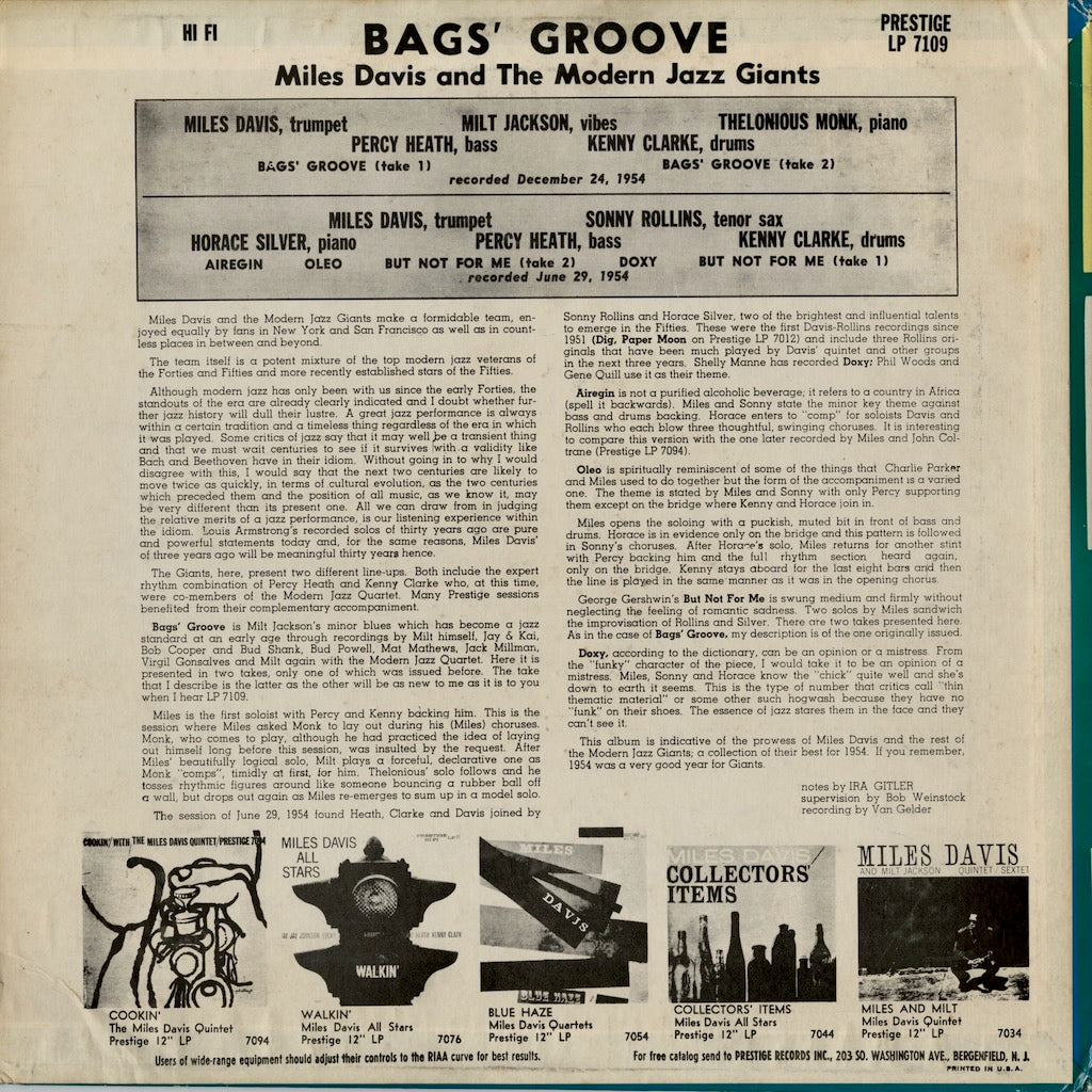 Miles Davis / マイルス・デイヴィス / Bags Groove (PRST 7109)
