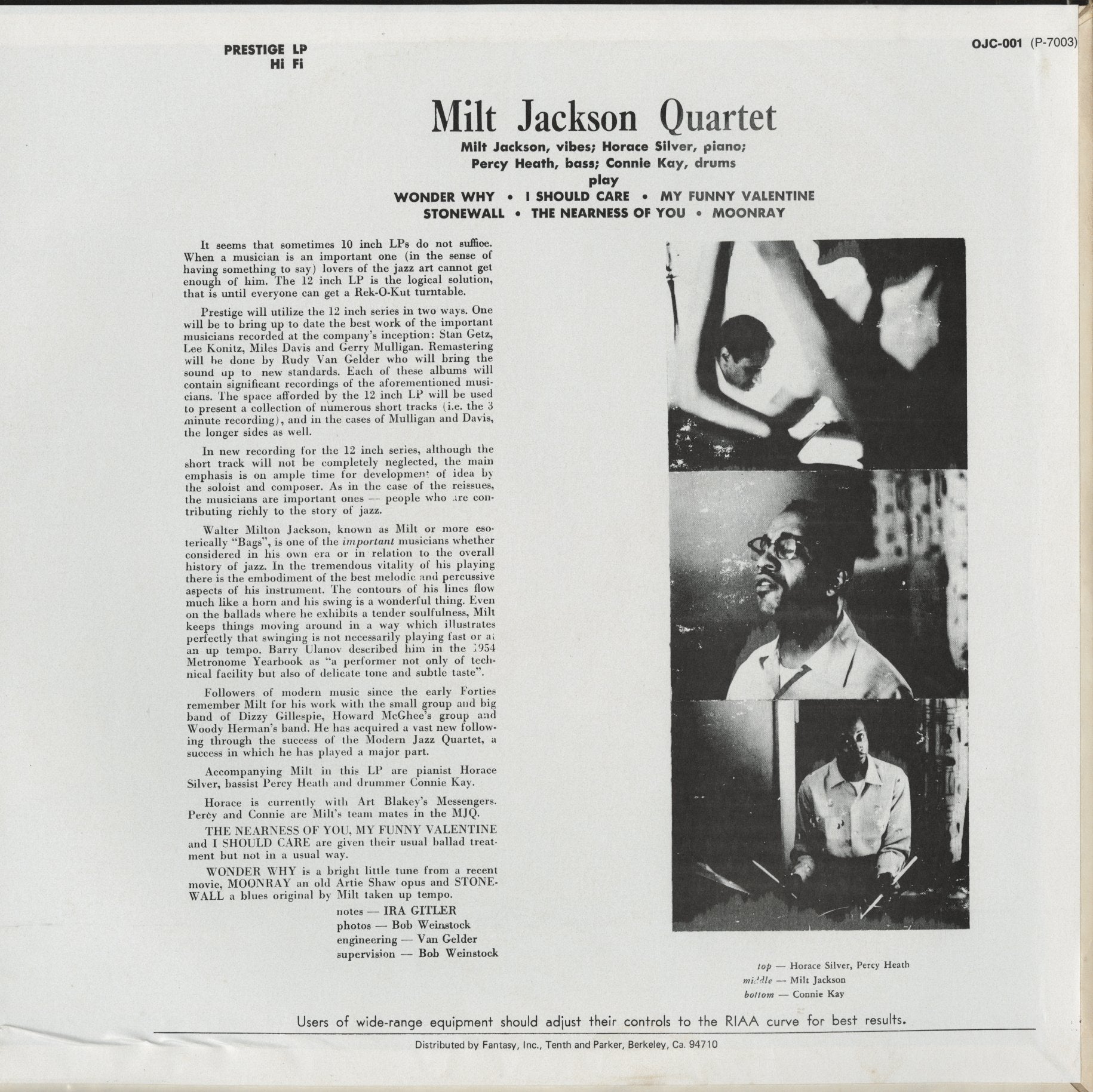 Milt Jackson / ミルト・ジャクソン / Milt Jackson Quartet (OJC-001)