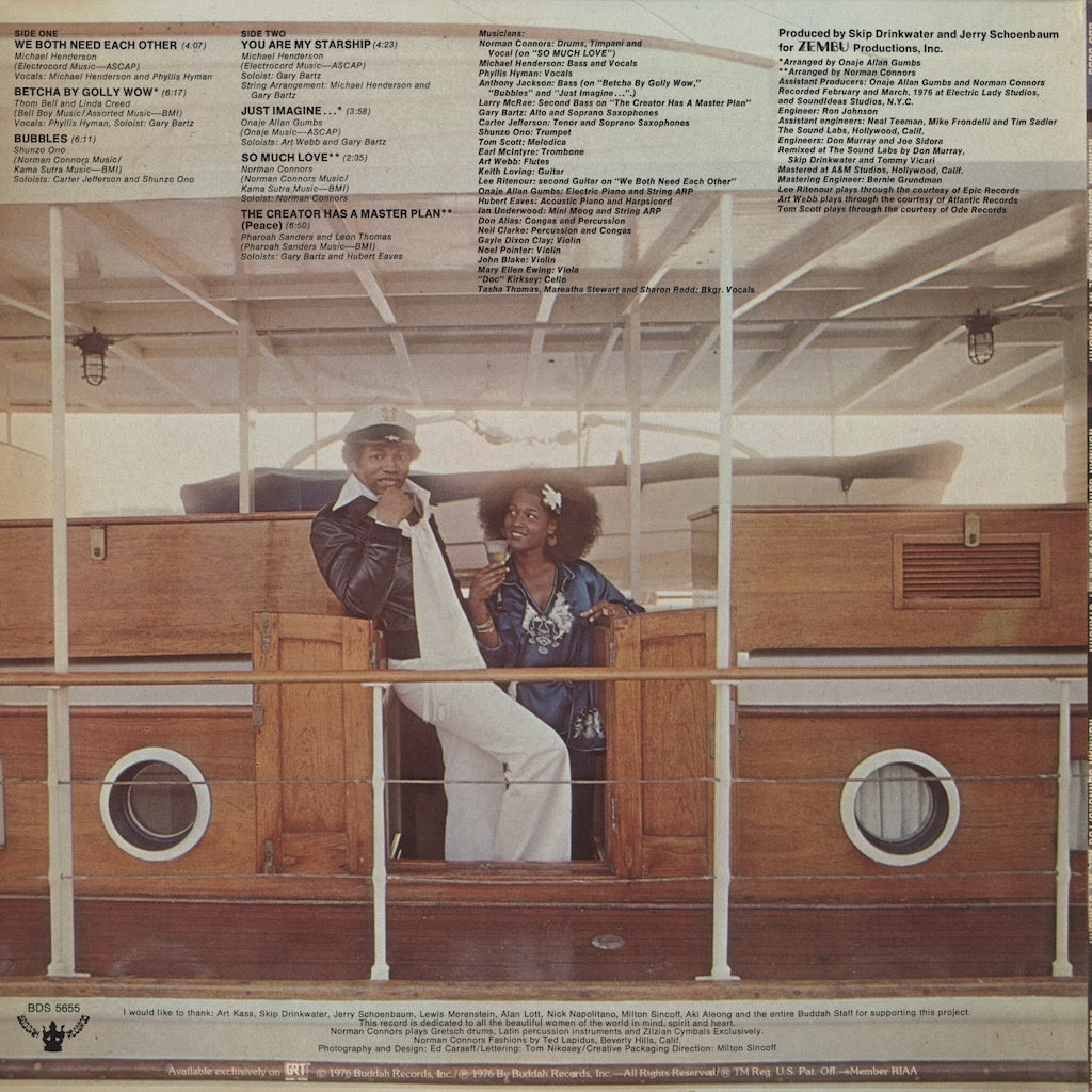 フィリス・ハイマン、ゲイリー・バーツが参加した76年のアルバム。スキャットが炸裂するアップリフティングなブラジリアン・フュージョンB-2、ファラオ・サンダースのカヴァーB-4はダス・エフェクス"Real Hip Hop"ネタ、そしてコズミックなメロウ・チューンB-1はフレディ・マクレガーの"Natural Collie"の元曲、とキラー曲満載の好アルバム。(VPI cleaned)