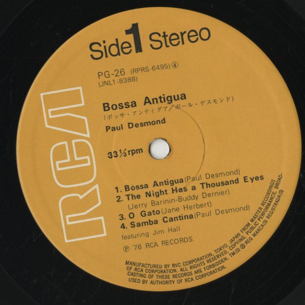 Paul Desmond / ポール・デスモンド / Bossa Antigua (PG26)