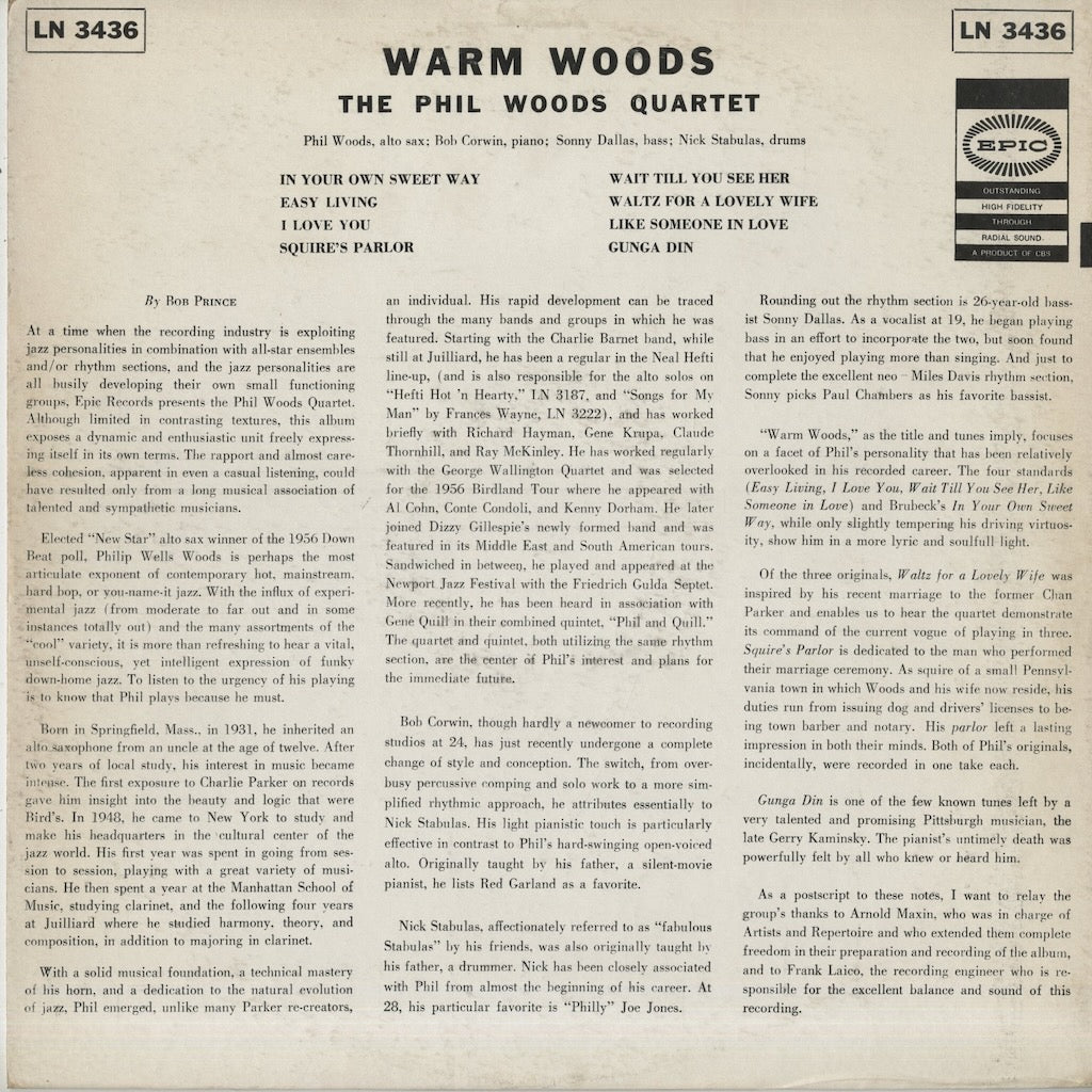 Phil Woods / フィル・ウッズ / Warm Woods (LN 3436)