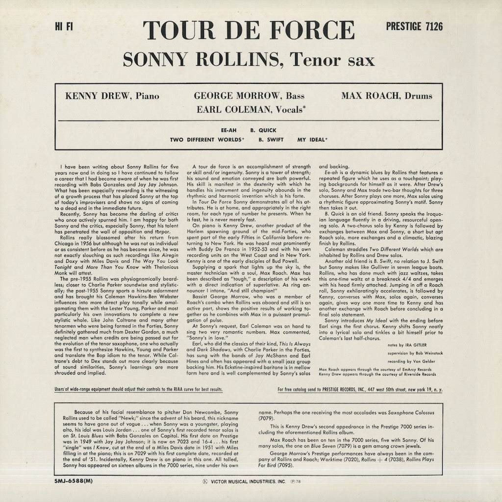 Sonny Rollins / ソニー・ロリンズ / Tour De Force (SMJ-6588(M))