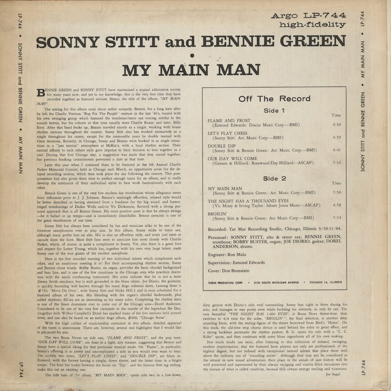 Sonny Stitt and Bennie Green / ソニー・スティット ベニー・グリーン / May Main Man (LP744)