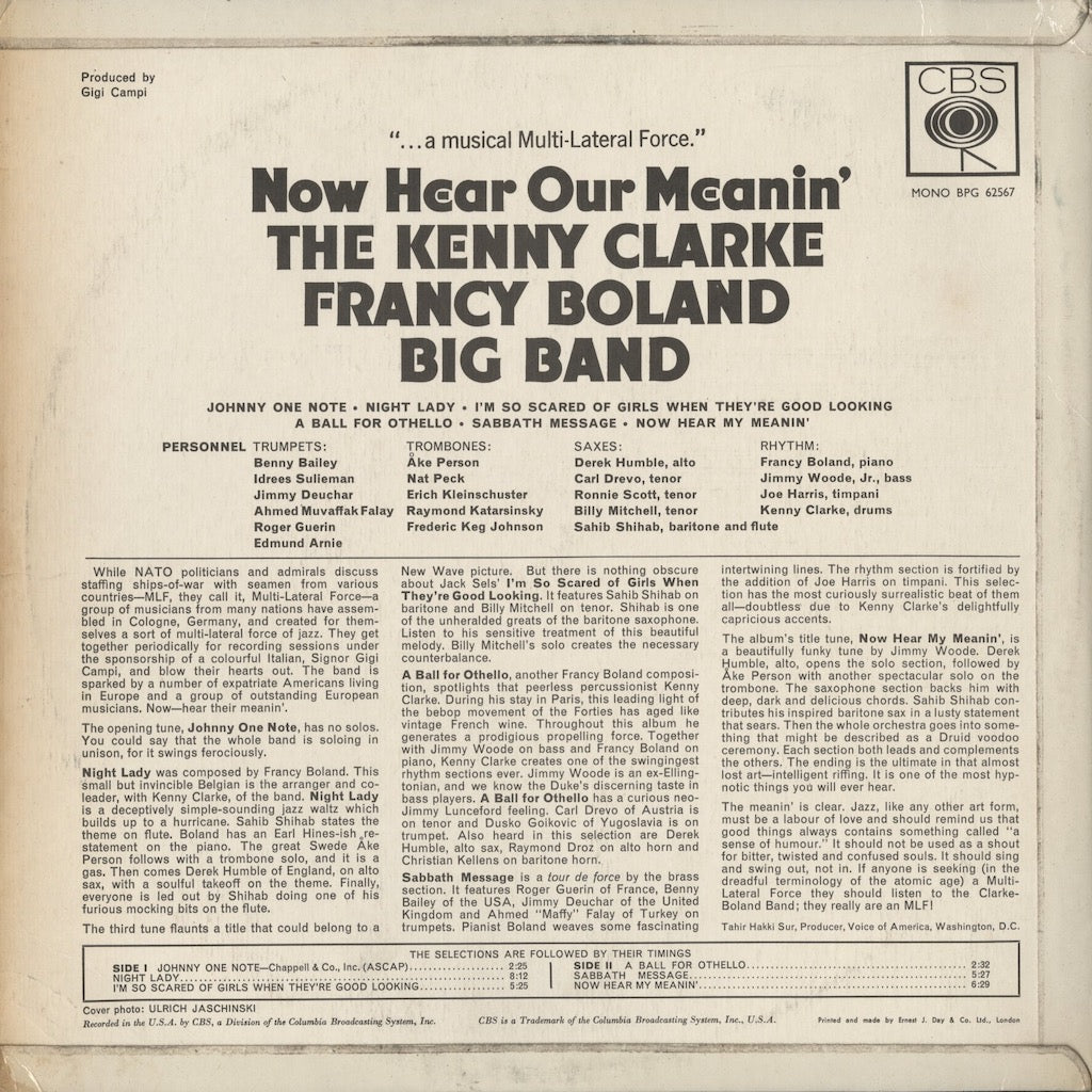 The Kenny Clarke - Francy Boland Big Band - Now Hear Our Meanin' (BPG 62567) LP 1966 UK CBS|中古LP