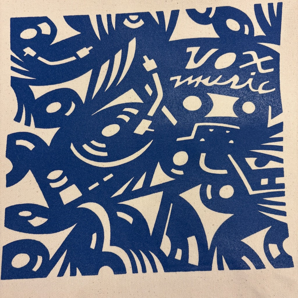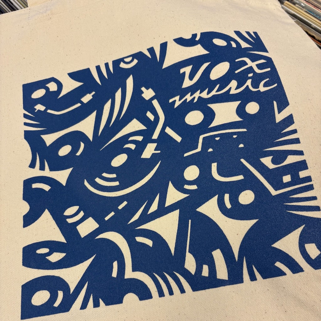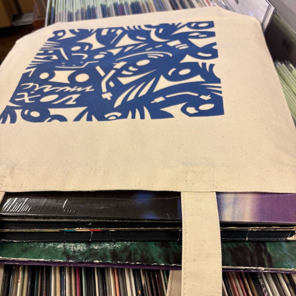 11オンス厚手の生地で作ったレコードサイズのトートバッグです。レコード5〜7枚入ります。当店で使用しているLPショッピング・バッグと同デザイン。アートワークはBJM氏です。