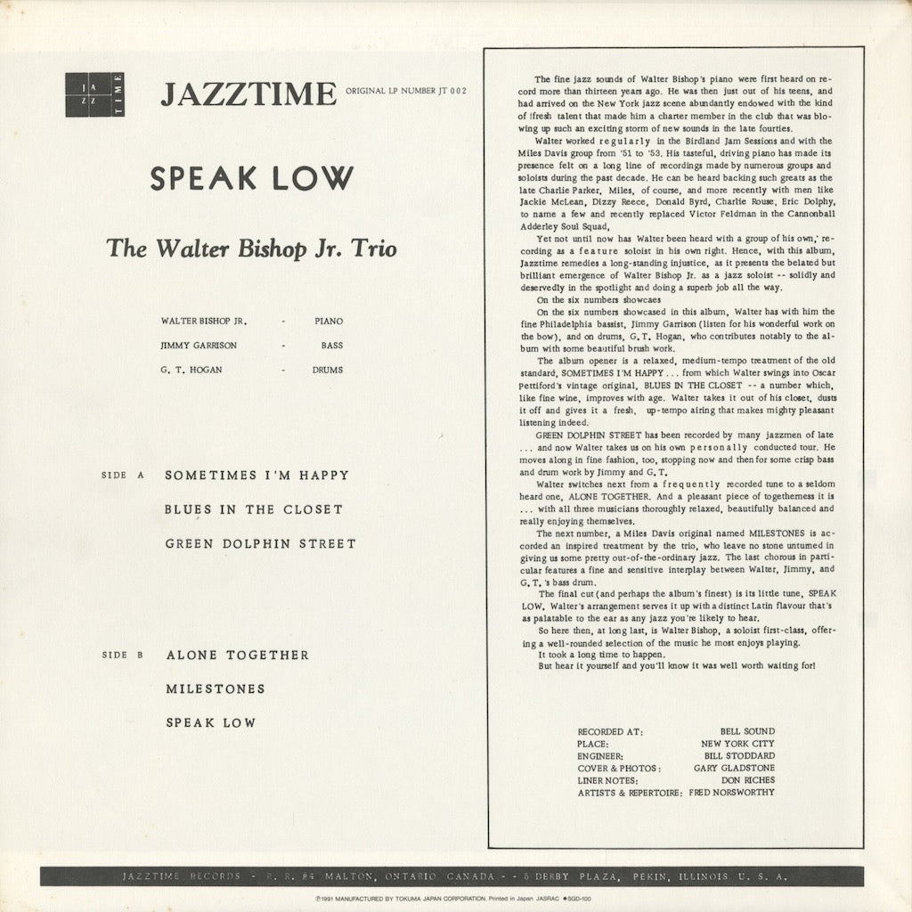 Walter Bishop Jr. / ウォルター・ビショップ・ジュニア / Speak Low (SGD-100) 1991 JPN Pressing MONO