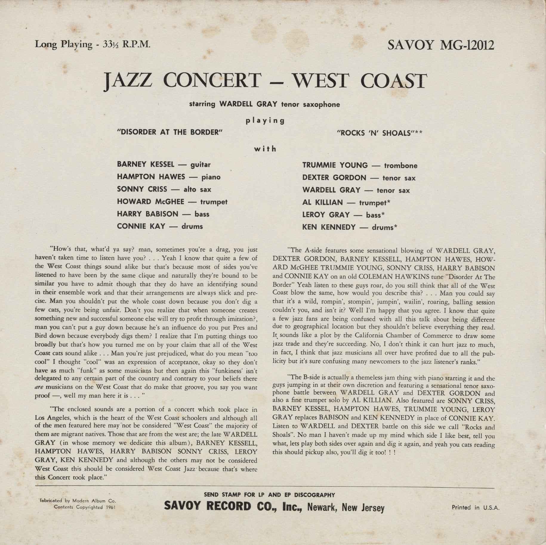 Dexter Gordon , Wardell Gray / Jazz Concert West Coast (Volume 1) (MG-12012)