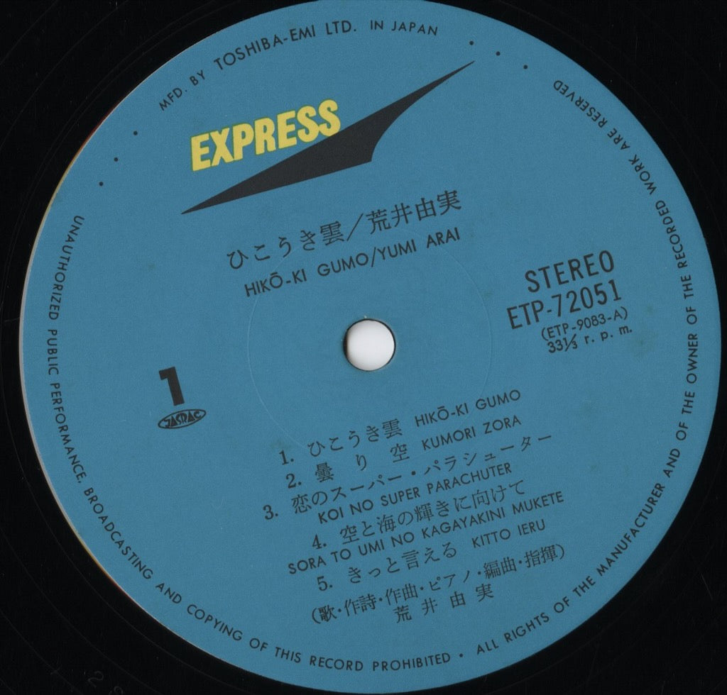 Yumi Arai / 荒井由実 / ひこうき雲 (ETP-72051)